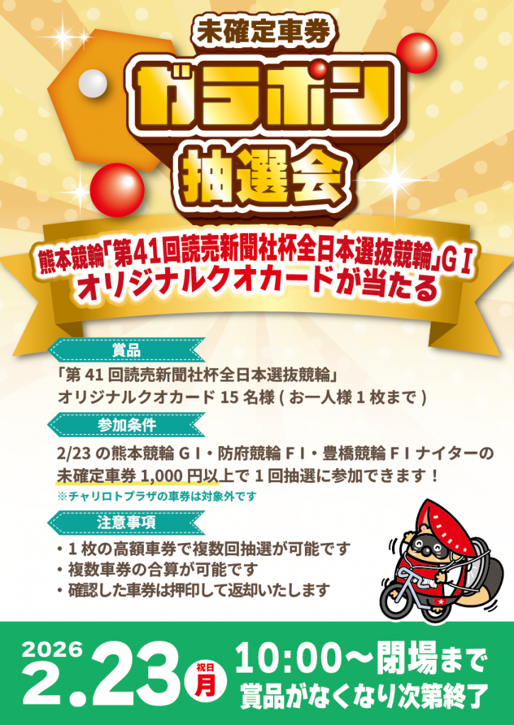 2月23日(月・祝)10:00から 小松島競輪場内インフォメーションにて実施!