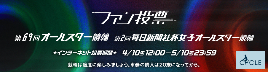「第69回オールスター競輪&第2回毎日新聞社杯女子オールスター競輪ファン投票」を実施いたします。